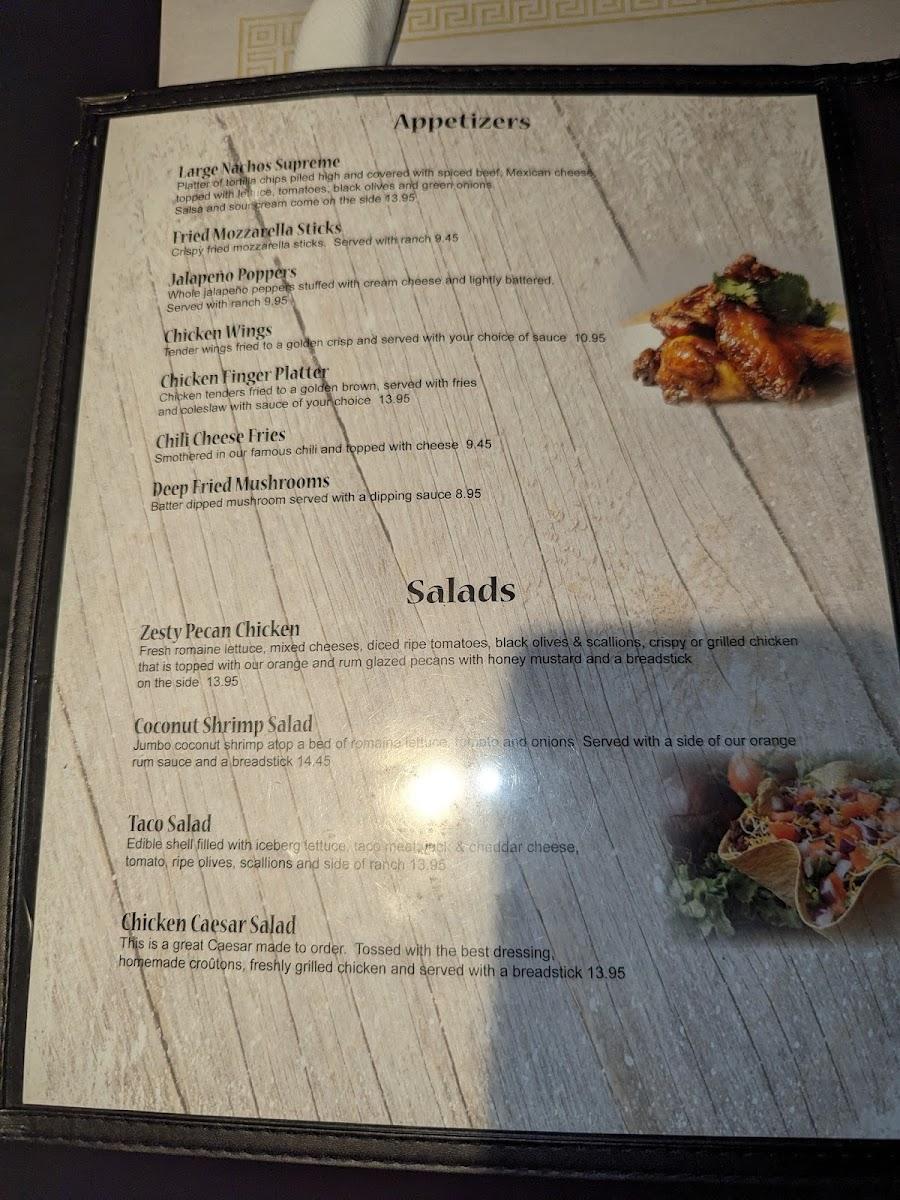 - Salads including the Coconut Shrimp Salad and Zesty Pecan Chicken Salad offer lighter, fresh options