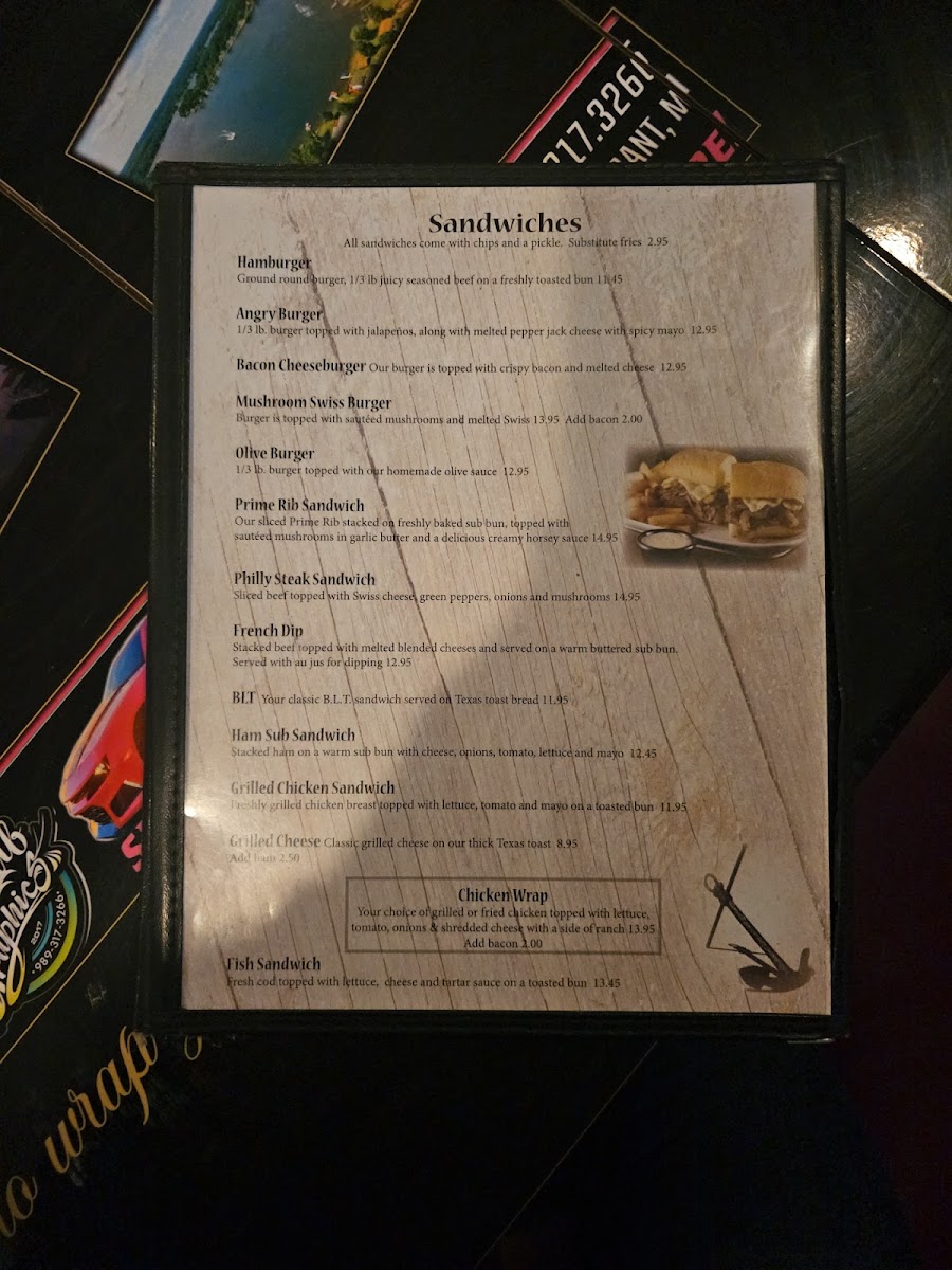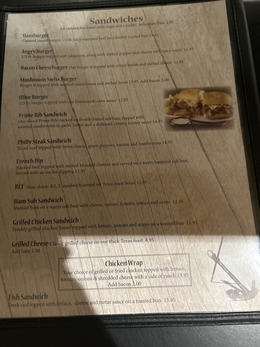 - Sandwiches and burgers, from the Prime Rib Sandwich to the Beef Burger, provide satisfying main courses
